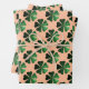 Dunkelgrünes funkelnd Kleeblatt auf Pfirsich Geschenkpapier Set