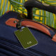 Dieses moderne Gepäckanhänger-Design zeichnet sich durch einen reichen dunkelolive-grünen Hintergrund aus. Ihre Initialen in fett weißem Text sorgen für ein schlichtes, stilvolles und dennoch berufliches Aussehen.