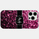 Dunkelrosa Imitate glänzenden Glitzer Glitzern Monogram iPhone Case. Personalisieren Sie Ihre Eingabe und Ihren Namen. Schöne mädchenhafte pinkfarbene glänzende Glitzer Glitzern. Foto von rosa Glitzern nicht wirklich Glitzer!