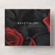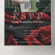 Die gotische Hochzeitseinladung mit einer rote Rose auf schwarzem Hintergrund. Die beiden obersten Drittel der Einladung können mit einem personalisierten Foto, das diese Einladung einzigartig für Sie macht, angepasst werden. Das Highlight dieser Einladung ist der bequeme QR-Code, mit dem Sie mühelos mit ihren Smartphones UAWG machen können. Für Traditionalisten haben wir auch eine traditionelle UAWG in Papierform eingeführt. Mit dem All-in-One-Design können die Gäste den UAWG leicht wegreißen und ihn zurückschicken. Zusätzlich haben wir E-Mail-Informationen für RSVPs bereitgestellt, um einen nahtlosen und komfortablen UAWG zu gewährleisten.