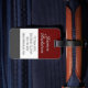 Personalisieren Sie diese dunkelrote, graue und weiße Gepäckmarke mit Ihrem Monogramm, Namen, Adresse, Telefon und E-Mail. Dieses stilvolle und angesagte Gepäckstück ist ein großartiges Geschenk.