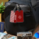 Dunkelrotes Hahnentrittmuster; Personalisiert Gepäckanhänger