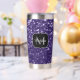 Dunkelviolett, lila Glitzer Glitzern Monogram Thermobecher