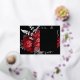 Diese elegante, launische Hochzeit Save the Date-Karte verfügt über einen üppigen, romantischen Blumenstrauß in Rot mit silbernen Imitate-Folie und Glitzer-Blattwerk auf einem schwarzen Hintergrund. Passen Sie den echten Silberfolientext in stilvollen Schriftart auf einem schwarzen Rechteck an, und fügen Sie Ihre Hochzeitswebsite-URL zum schwarzen Schwarz-Rücken hinzu.