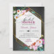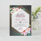 Bridal Duschkarte aus dem Chalboard mit geometrisch goldfarbenem Rahmen, rot-rosa Blume und grünen Blätter.