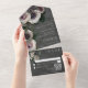 ERHÄLTLICH MIT ODER OHNE QR CODE ODER MIT ODER OHNE AUSWAHL DES ABENDS. Dieses Design besticht durch einen dunklen, schwarzen und silbernen marmorierten Hintergrund mit einem schönen, blumengeschmückten Spray aus weißem, grünem und hellrosa Lavablader. Erstellt von der einfachen Farmhouse Press.