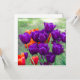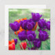 Dunkle lila Tulpen an einem sonnigen Tag im Garten. Das Foto wurde im Juni 2022 aufgenommen. Das Poster ist für die Innenarchitektur geeignet.