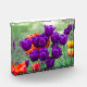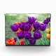 Dunkle lila Tulpen an einem sonnigen Tag im Garten. Das Foto wurde im Juni 2022 aufgenommen. Das Poster ist für die Innenarchitektur geeignet.