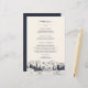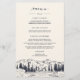 Unser rustikales, schicke Hochzeitsmenü oder ein besonderes Veranstaltungsmenü umfasst Vorspeisen, Vorspeisen und Desserts, die mit einer skizzierten Darstellung von Berggipfeln, Kiefern und einem fließenden Fluss versehen sind, mit "Menü" oben in eleganter Kalligraphie-Schrift. Koordiniert mit unserer Hochzeitskollektion "Mountain Sketch".