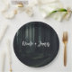 Dunkle Moody-Waldbäume bei Twilight-Hochzeit Pappteller