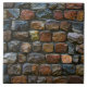 Ein Bild einer Steinmauer mit dunklen, bunten, viereckigen Steinen
