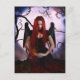 "Dark Enchantress" Ein auffallendes, fantasievolles Portrait zeigt eine geheimnisvolle Frau mit langen, lebendigen roten Haaren, die ihre Brust und Schultern hinunter kaskadieren. Sie trägt ein tiefschwarzes Kleid, das sich nahtlos in den dunklen, miesen Hintergrund einfügt. Schwarze Engelsflügel ziehen sich von ihrem Rücken aus und erinnern an die Aura eines gefallenen oder dunklen Engels. Der Hintergrund zeigt eine surreale, anderweitig weltliche Szene mit verdrehten, blätterlosen Baumzweigen, die an einem Dämmerhimmel voller Purpur, Pinks und sanfter Gläschen silbrig sind, was auf einen magischen oder himmlischen Reich hindeutet. Eine schwache Linsenflare erhöht die mystische Stimmung um eine ätherische Touch.