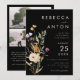 Überraschen Sie Ihre Freunde und Familie mit diesen eleganten Einladungen für Hochzeiten, mit 3 individuellen Fotos, Wildblumen, schwarzem Hintergrund, qr Code & Text. Fügen Sie einfach Ihre eigenen Daten hinzu, indem Sie auf die Option "Personalisieren" klicken.