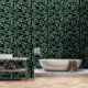 Elegantes modernes botanisches Tapetenmuster mit grünen Farnen auf dunklem Hintergrund
