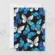 Realistisches, blaues und weißes Schmetterlingsmuster auf schwarzem Hintergrund.
