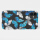Realistisches, blaues und weißes Schmetterlingsmuster auf schwarzem Hintergrund.