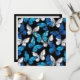 Realistisches, blaues und weißes Schmetterlingsmuster auf schwarzem Hintergrund.
