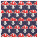 Ein Pixelkunst-Fliegenblätterpilzpilz mit den weißen Konturen, zum auf dunklen Farben darzustellen. Der rote gepunktete Pilz ist auf einem dunkelblauen Hintergrund. Die Hintergrundfarbe kann geändert werden.
