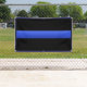 Unser originelles Design mit dem universellen Symbol der Strafverfolgung, der Thin Blue Line, ermöglicht es jedem, seine Unterstützung für die Strafverfolgung öffentlich zu zeigen. Unser Fahnen-Banner verfügt über Metallgrommets für einfaches Hosten, Hängen oder Fliegen von jedem konventionellen Fahnenmast für jede Veranstaltung von Feiertagen bis Beerdigungen. Dies ist eine großartige Möglichkeit, die Männer und Frauen zu ehren, die unsere Gemeinschaften schützen und ihnen dienen. Während der Nationalpolizeiwoche und des Gedenktages für Friedensbeamte am 15. Mai jeden Jahres sollten Sie eines haben.