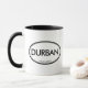 Willkommen nach Durban! Sind Sie von Durban, Südafrika? Haben Sie ein Freund- oder Familienmitglied, das Lieben Durban, Südafrika? Wenn ja ist diese "Standort-Standort" Tasse, nach was Sie suchen! Die Ausrüstungsbeschreibungen "Durban" in der großer schwarzer Beschriftung und "in Südafrika" in der kleinen schwarzen Beschriftung umgeben durch zwei Ovale, eins dünn und eins stark.
