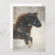 Eine auffallende Aquarell-Illustration eines Pferdes, das durch sanft fallenden Schnee galoppiert. Die reiche, fließende Mähne und die dynamische Bewegung fangen den Geist der wilden Schönheit des Winters ein. Perfekt als Weihnachtskarte, saisonale Grußkarte oder ganzjährige Inspiration für jeden Pferdeliebhaber oder Naturliebhaber. Innen leer und wartet auf Ihre persönliche Nachricht.