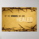 Grunge Stil Typografie in Braun und Sahne (Not-Typ) mit Schlagzeile, "Von seinen Wunden sind wir geheilt", Worte aus Isaiah 53:5. Hintergrund ist Krone von Dornen Rand oben und unten mit einem bräunlichen Zentrum.