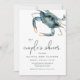 Das perfekte Paar-Dusche lädt zum Feiern der Braut und des Bräutigams ein. Dieses Küstendesign besticht durch eine blaue Krabbe in der oberen Ecke in lebhaften Aquarellen. Die einladende Textpaarung ist modern mit einer lässigen Eleganz, die sowohl geschmackvoll als auch gastfreundlich ist. Personalisieren Sie die Textvorlage mit Ihren spezifischen Daten. Diese Einladung eignet sich hervorragend für Hochzeitsfeiern an der Küste oder für eine Ansammlung mit Krabbenfest, Krabbenkochen oder anderen Meeresfrüchten.