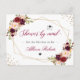 Baby Dusche oder Brautparty - Goldene geometrische Burgundy Red Floral Shower by Mail Ankündigung Postcard. (1) Für weitere Anpassungen klicken Sie bitte auf den Link "Weiter anpassen" und verwenden Sie unser Designwerkzeug, um diese Vorlage zu ändern. (2) Wenn Sie Hilfe oder passende Artikel benötigen, kontaktieren Sie mich bitte.