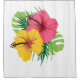 Machen Sie Ihr Bad zu einer tropischen Oase. Dieser schöne Duschvorhang ist mit einer rosa und gelben Blume aus Hibiskus und Grünpflanzen versehen. Man fühlt sich wie im Paradies, wenn man in die Dusche geht.