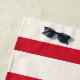 Das Strandtuch ist rot und weiß gestreift und bietet ein niedliches, modernes und elegantes Wasserbad.