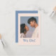 Minimalistische Hochzeitseinladung in Beige- und Blautönen.
