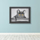 Ein Foto, das direkt in das Gesicht einer grauen Katze mit golden leuchtenden Augen schaut. Hergestellt mit selektiver Färbung zur Betonung der faszinierenden Augen.