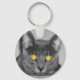 Ein Foto, das direkt in das Gesicht einer grauen Katze mit golden leuchtenden Augen schaut. Hergestellt mit selektiver Färbung zur Betonung der faszinierenden Augen.