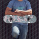 Dusky Pink Grayish Blue Cherry Blossom Floral Skateboard