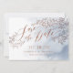 Elegante, moderne Kalligraphie-Save the Date-Karte mit rustikalem Blumendesign in Kupferbraun-Farbe auf sanften staubblauen Aquarellfarben, ideal für moderne rustikale Hochzeiten, Frühjahrs- oder Winterhochzeiten. Sehen Sie sich alle passenden Stücke in der Sammlung unten an.
