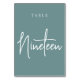 Dusty Aquamarin Hand Scripting Table NINETEEN Tischnummer