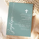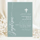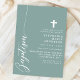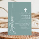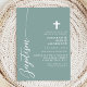 Feiern Sie den heiligen Anlass einer Taufe mit dieser eleganten, staubigen aquamarinen Einladung. Mit einem minimalistischen Design mit modernem Drehbuch und einem delikaten Kreuz lädt diese Einladung Freunde und Familie zu diesem besonderen Ereignis ein. Die sanfte Farbe und die schlichten, sauberen Linien verleihen dem Hotel eine Touch von Eleganz und Anmut, die es zu einem so bedeutsamen Fest macht. Passen Sie die Details an, um eine einzigartige und unvergessliche Einladung für die Taufe Ihres Kindes zu schaffen.