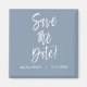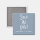 Dusty Blue und White Hand Lettered Script speichern Sie das Date Magnet. Der Text dieses handgeschriebenen Pinselskriptmagneten kann aktualisiert und mit Ihrem Namen angepasst werden.