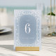 Elégant design vintage orné de cadre en crème sur arrière - plan bleu poussiéreux doux, romantique et sophistiqué, cartes grand numéro de table pour mariage vintage, mariage romantique, mariage d'hiver.