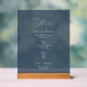 This dusty blue acrylic drink menu sign adds a refined and stylish accent to your wedding day décor.