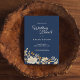 Diese Dusty Blue Herbst Boho Hochzeitsbrunch Einladung kombiniert ein antikes Ambiente mit einem Retro-Böhmischen Wildblume-Look. Die eleganten, neutralen beigen Wildblumen auf dem staubblauen, marinösen Hintergrund mit klassischer Kalligraphie-Typografie ermöglichen eine formale, aber wilde und blumengeschmückte Hochzeitsfeier im Vintagen Stil.