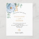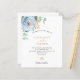Ein schick weißer Hintergrund. Dekoriert mit einer staubigen blauen Blume, Rose Blume und grünen Aquarellblüten Eukalyptus-Blätter, Sprigs, Grün und einem Imitat goldenen Sprig. Personalisieren und fügen Sie Ihre Namen und Hochzeitsdetails. Schwarze und goldfarbene Buchstaben. 1 Blatt = 1 Einladung mit Druckkante bis Kante.