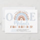 Une invitation amusante à l'arc-en-ciel avec des tons bleus poussiéreux qui est parfait pour une soirée à thème arc-en-ciel boho pour votre petit premier anniversaire!