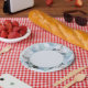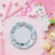 Elegante pastellfarbene, staubblaue botanische Teller mit Blumendekoration. Perfekte und einfache Reinigung für Ihren besonderen Tag.
