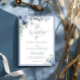 Die Einladung zum Hochzeitsfeiern ist ein atemberaubend schönes Beispiel für zartes und raffiniertes Design. Das Farbschema der Einladung ist eine atemberaubende Mischung aus ruhiger Blues und üppigen Grüntönen, die ein Gefühl von Ruhe und natürlicher Schönheit hervorruft. Das Blumendesign zeichnet sich durch ein zartes Zusammenspiel von grünem Blattwerk und staubblauen Blumen aus und schafft ein Gefühl von Harmonie und Ausgeglichenheit. Die künstlerische Gestaltung der Blume und des Blattwerks ist atemberaubend, jedes Detail liebevoll bis zur Perfektion gefertigt. Die elegante Kalligraphie verleiht Romantik und Raffinesse eine Touch. Das Design der Einladung ist zeitlos und modern, mit dem perfekten Gleichgewicht zwischen klassischen und zeitgenössischen Elementen. Die Verwendung von Farbe, Schriftart und Blumendesign ist harmonisch und ausgewogen und schafft eine zugleich stilvolle und zeitlose Einladung. Vollständige Sammlung: https://www.zazzle.com/collections/elegant_dusty_blue_floral_bouquet-119743866163758178