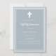 Dunkelblauer Hintergrund, mit weißem Rahmen dekoriert, weißes Kreuz Persönlich und fügen Sie den Namen und die Details. Weißer Text.