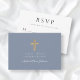 Personalisierte Dusty Blue Boy Religious Cross First Communion RSVP Card. Teil der Dusty Blue Cross Boy First Communion Invitation Suite mit passendem Einladungs-, Schreibwaren- und Party-Zubehör.