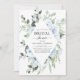 Dusty Blue Floral Rose und Eukalyptus Botanische Grüne Wasserfarben Frühling oder Sommer Hochzeitsdusche Einladungen - beinhaltet schöne und elegante Schriftzeichen mit modernen tropischen botanischen Blume und Grün für die besondere Hochzeitsfeier.