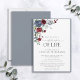 Eine schöne, elegante staubblaue und bordeauxrote Aquarellblume und handgeschriebene Kalligraphie Feier des Lebens Gedenkfeier Service Einladung. Text ist leicht personalisiert. Copyright Anastasia Surridge für Elegant Invites, alle Rechte vorbehalten.