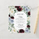 Dusty Blue Burgundy Boho Hochzeit im Herbst Menu Cards - mit einem eleganten Eukalyptus und einem grünen Kranz dekoriert mit Elfenbein/Weiß, staubigen Blau/Schiefer/Stahl und bordeauxroten/Cranberry-Blume. Sehen Sie sich die passende Auflistung auf dieser Seite an, um koordinierende Produkte zu finden.